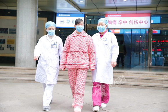 出院患者在醫(yī)務(wù)人員陪同下走出醫(yī)院。華龍網(wǎng)-新重慶客戶端 記者 李文科 攝