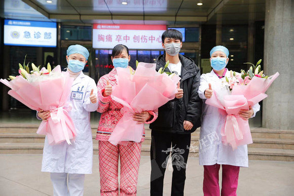 主管護(hù)士向出院患者送鮮花。華龍網(wǎng)-新重慶客戶端 記者 李文科 攝