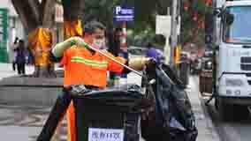 在月光草坪,記者看到,工作人員穿著專業(yè)的消毒服,正在對(duì)公園里的垃圾進(jìn)行清掃和消毒。