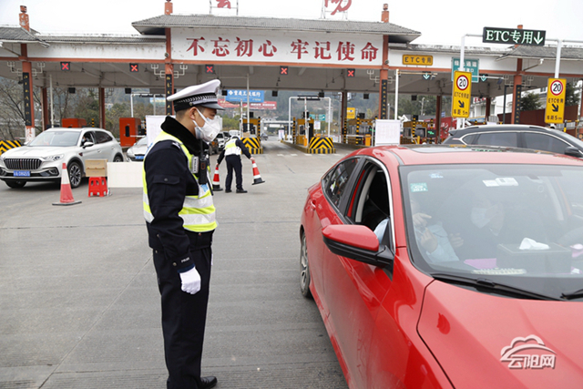 2月2日,重慶云陽高速路口,云陽縣交巡警大隊民警24小時堅守在寒風中,配合醫護人員,對進站口、出站口的旅客進行體溫測試、檢查口罩佩戴情況,并對身份證、駕駛證逐一驗證,努力做到決不漏掉一個。當有人問及怕不怕時,民警們總是淡然回答:“怕,哪有不怕的,上有老下有小的。”但是,他們又異常堅定:“這場防疫阻擊戰中,我們就是‘防火墻’,放走的病毒越少,白衣天使面對的‘敵人’就越少,嚴防死守打贏這場戰爭,是我作為民警的責任。”