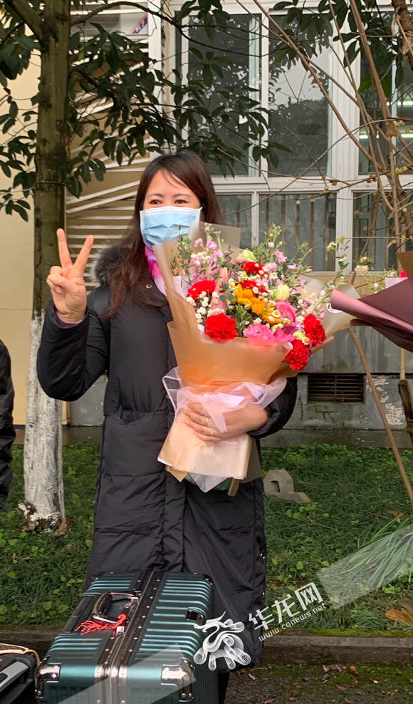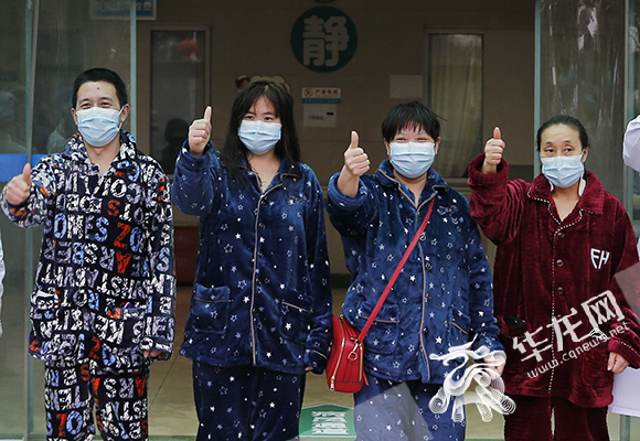 2月6日,重慶三峽中心醫院4名新型冠狀病毒感染的肺炎確診患者治愈出院。華龍網-新重慶客戶端 記者 李文科 攝