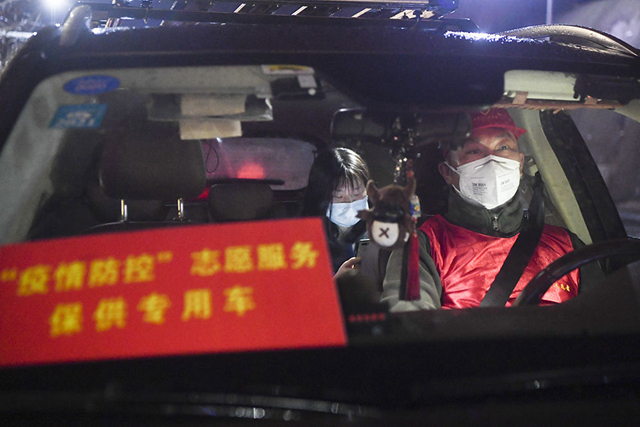 ↑2月6日晚,郭高平開車送云陽縣人民醫院醫務人員上夜班。新華社記者 王全超 攝