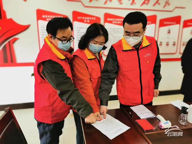 在白云社區,黨員服務小分隊承擔了3個出入點7棟居民樓出入登記管理、外地返云人員摸排、防疫宣傳等任務。剛到工作地點,隊員們就配合社區工作人員,第一時間投入到測溫、登記,外來人員勸返、發放宣傳單中。