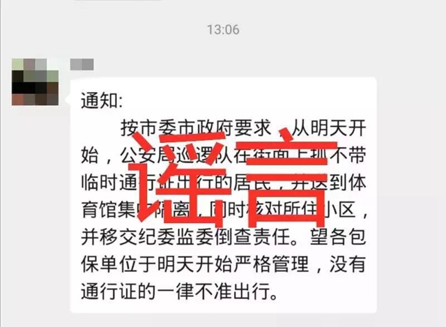 謠言1:明日起上街不帶臨時通行證的居民將被集中隔離