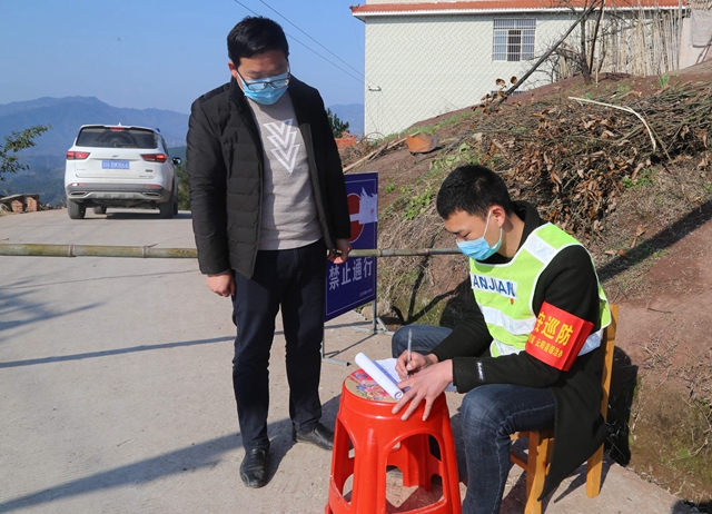 受領任務后,周永祥發揮軍人作風,迅速投入到疫情防控戰斗中。他緊跟村委會人員一道,戴上黨徽值守重點卡口。“你好,請你停車搖下車窗,我是排查登記武漢和湖北返回人員和其他外來人員的”“無特殊情況大家請回到各自家中”“謝謝你的支持配合” ……十幾天來,周永祥堅守在防控疫情的崗位上,不斷重復著這些話,和大家一道參加24小時不間斷輪流值班值守。