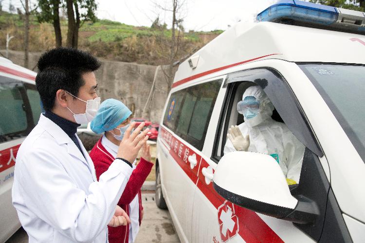 正是怕對(duì)接上出現(xiàn)問(wèn)題,王志強(qiáng)親自參與了多次轉(zhuǎn)運(yùn),不斷調(diào)整流程,最后梳理出來(lái)的流程是:鄉(xiāng)衛(wèi)生院初篩疑似病人上報(bào)云陽(yáng)縣衛(wèi)生健康委,云陽(yáng)縣衛(wèi)生健康委把資料傳到云陽(yáng)縣人民醫(yī)院專家組,專家組審核后再上報(bào)云陽(yáng)縣衛(wèi)生健康委,云陽(yáng)縣衛(wèi)生健康委就通知云陽(yáng)縣人民醫(yī)院120調(diào)度中心接人,人接回后送到發(fā)熱門診由醫(yī)生進(jìn)一步檢查CT、血常規(guī)等,之后就送到感染科隔離治療。在此期間,還要把疑似病人的采樣送到云陽(yáng)縣疾控中心,檢測(cè)出來(lái)的確診病人就送到萬(wàn)州定點(diǎn)醫(yī)院救治。運(yùn)送第一批9名病人去萬(wàn)州時(shí),也是王志強(qiáng)親自帶隊(duì)。