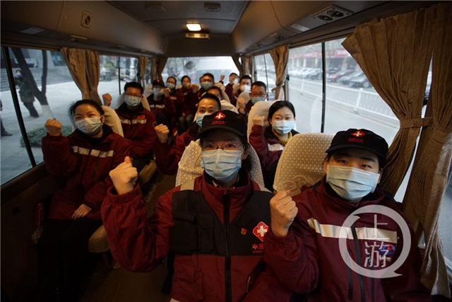 “情系孝感,風(fēng)雨同舟,共渡難關(guān)!”2月23日清晨8點(diǎn)鐘,在重慶市渝北區(qū)旗龍路市衛(wèi)生健康委大門口傳來了響亮的口號(hào)聲,重慶市第15批援湖北醫(yī)療隊(duì)在短暫的出征儀式之后,出發(fā)前往孝感。