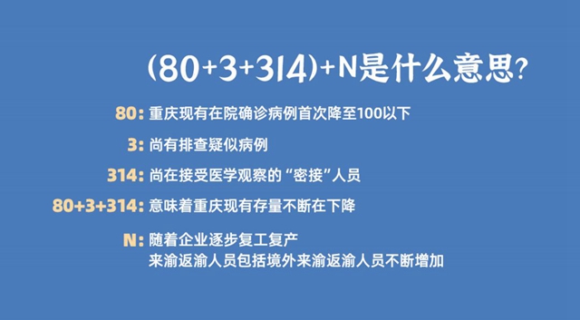 專家認為,我市連續8日無新增確診病例,現有在院確診病例降至80例,現有在院確診病例為零的區縣增至14個,疫情防控形勢積極向好的態勢正持續拓展。但是,零增長并不等于零風險。隨著企業逐步復工復產,來渝返渝人員包括境外來渝返渝人員不斷增加,疫情反彈的風險仍不容忽視,仍需因地制宜,認真落實好分區分級分類防控要求。