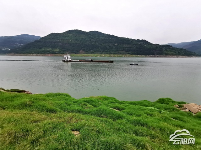 云陽:庫區水位降至151米 天然草坪顯露美如畫