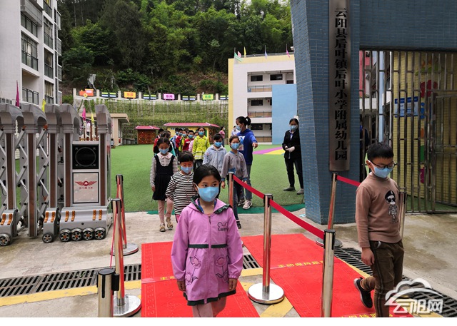 云陽網訊(通訊員 王軍 陳林)5月28日,后葉小學附屬幼兒園開展了開學疫情防控演練,邀請了小學一年級的學生模擬開學后幼兒小朋友入園活動及教師突發應急事件處置過程演練。
