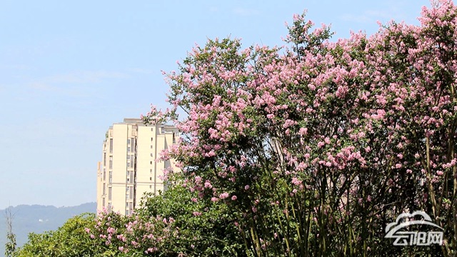 云陽月光草坪:江畔紫薇開 盛夏占芳菲