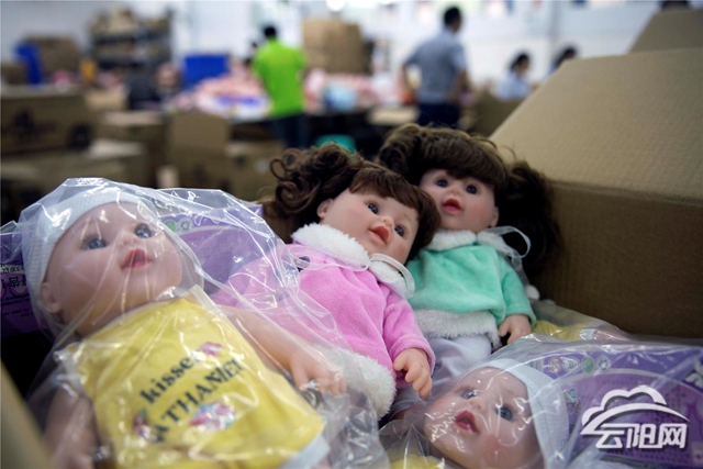 7月31日,工人在高陽鎮返鄉創業園優多科技有限公司給玩具娃娃完成穿衣服、包裝等工序。