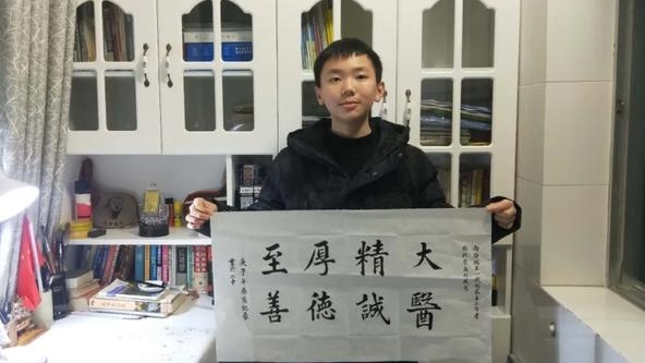 她酷愛傳統文化,堅持練習書法、誦讀5年多,不僅在舞臺上傳播著長征精神,愛國情懷;還開啟班級直播《小胡教誦讀》。在抗新冠疫情中,用書法朗誦在同學中傳遞正能量;