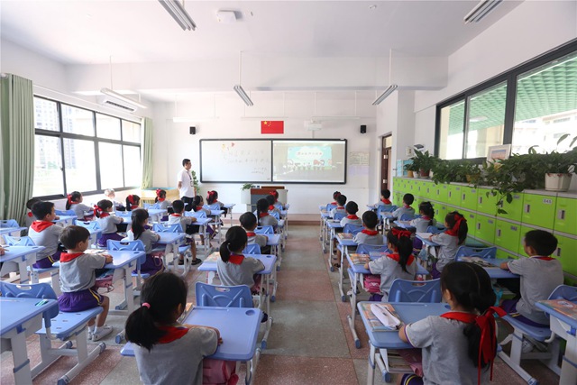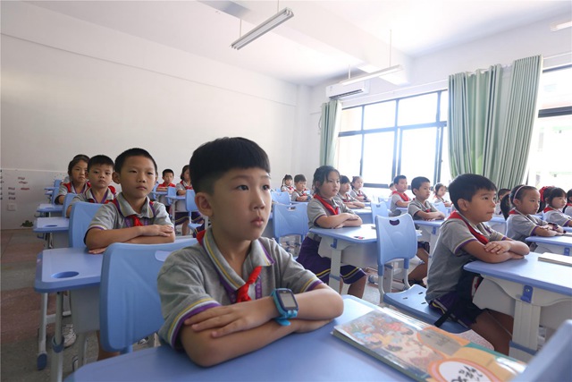 開學典禮以直播方式進行,主會場設在學校向上劇場,各班師生在教室觀看實況。
