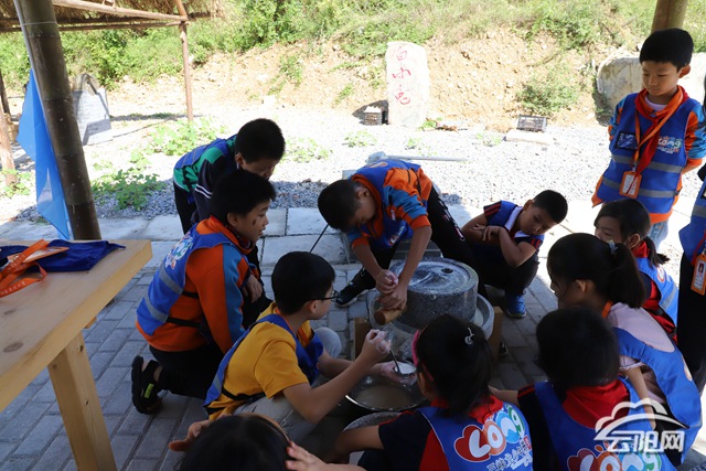 研學(xué)基地“豆子的秘密”研學(xué)項(xiàng)目引起孩子們的濃厚興趣?!拔抑蟮亩?jié){真香??!”小朋友們圍著爐罩,眼睛緊緊盯著鍋中升騰的熱氣,排著長(zhǎng)隊(duì)耐心等待豆?jié){出鍋。“手工豆花、豆腐真好吃!”在帶隊(duì)老師幫助下,小朋友們切身體驗(yàn)到了從磨黃豆、濾豆渣、煮豆?jié){、點(diǎn)豆花,最后制成白白嫩嫩豆腐的全過程,也感受到了勞動(dòng)的甘甜與艱辛。
