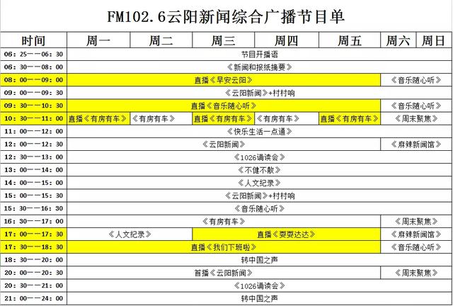 《早安云陽(yáng)》《音樂(lè)隨心聽(tīng)》《有房有車(chē)》