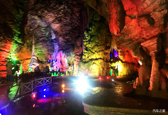 龍洞由前后兩廳組成,前廳成圓形,寬40余米,高近50米,長120米,面積4800平方米,內(nèi)遍布千姿百態(tài)的鐘乳石,神奇瑰麗,琳瑯滿目。有“白玉龍床”、“龍傘”、“龍壺”、“龍椅”、“龍凳”、“蓮臺(tái)”、“天雞報(bào)曉”等自然景觀。后廳呈五邊形,高30米,長300余米,面積6000平方米。里面的石鐘乳