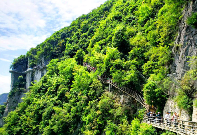 云陽龍缸風(fēng)景區(qū):國家AAAAA級(jí)旅游景區(qū)、國家地質(zhì)公園、2016國慶“旅游服務(wù)最佳景區(qū)”,被旅行者稱為長江三峽最后的“香格里拉”,被戶外愛好者譽(yù)為重慶版的“小華山”。云陽龍缸風(fēng)景區(qū)位于重慶市云陽縣境內(nèi)東南隅,緊鄰湖北利川市,集天坑、峽谷、溶洞、高山草場(chǎng)、森林、土家風(fēng)情于一體,主要景點(diǎn)有龍缸天坑、云端廊橋、龍洞風(fēng)光、龍窟峽、岐山草場(chǎng)、蔈草古長城、岐陽關(guān)古道遺址、蓋下壩湖泊等。其中龍缸天坑深335米,居全國第三、世界第五,龍缸天坑的坑壁由峭壁拱成,傾斜幅度近90度,這種直上直下的形態(tài)在世界上極為罕見,享有“天下第一缸”的美譽(yù)。云陽龍缸風(fēng)景區(qū)建在海拔1010米高懸崖上的“云端廊橋”,以“天空之花”的花瓣作為造型,廊橋上可以720°欣賞周邊美景。其懸挑長度26.68米,廊橋距離地面高度718米,比美國科羅拉多大峽谷玻璃廊橋懸挑長度還長5.34米,是世界最長懸挑玻璃廊橋。云陽龍缸景區(qū)內(nèi)地貌奇特,溶洞密布,奇峰怪石、石筍摩天、雄險(xiǎn)俊秀、千姿百態(tài)、多彩多姿,是自然科學(xué)的博物館、地質(zhì)景觀的大觀園。龍缸四季,景色各異,春之花草,夏之飛瀑,秋之紅葉,冬之白雪,無不令人為之叫絕。2017年2月25日,新晉為國家5A級(jí)旅游景區(qū)。
