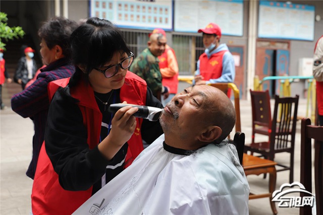 活動中,志愿者們?yōu)轲B(yǎng)老院全體老人獻上了唱歌、舞蹈、朗誦等豐富多彩的文藝節(jié)目,老人們一邊曬著暖陽,一邊欣賞表演,一個個樂得合不攏嘴,臉上洋溢著幸福的笑容。隨后,志愿者們兵分兩路,一些志愿者走進老人房間,幫他們整理床鋪,打掃衛(wèi)生,與臥床的老人談心,聽他們講述了屬于他們年代的故事,老人臉上都掛著淺淺的微笑。另一些志愿者則為老人洗頭,協(xié)助理發(fā)師幫老人理發(fā)、剃胡子、捶肩捏腿等。大家手藝嫻熟,耐心傾聽老人對發(fā)型的要求,老人修剪頭發(fā)后都精神抖擻,笑容滿面,周到貼心的服務(wù)贏得了老人們的一致好評。“今天敬老院十分熱鬧,志愿者為我們表演節(jié)目、理發(fā),還走進房間做清潔,大家伙都非常開心,這些服務(wù)都是給老人們滿滿的愛。”施敬全老人說道。