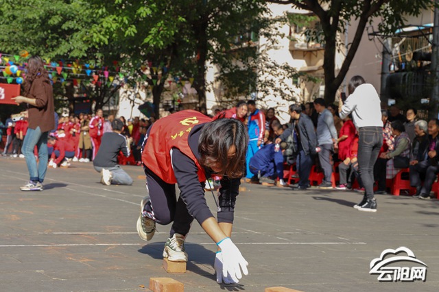活動在社區老體協演出的團隊健身操《站在草原望北京》中拉開了序幕。老年朋友們穿著統一的服裝,邁著整齊的步伐,一個個精神矍鑠,舞姿優美。在陽光的映射下,每個人臉上都洋溢著幸福和喜悅,現場圍觀的居民不時報以熱烈掌聲。此次活動共分為合力過河、滾鐵環、挽毛線、擠氣球、敲鑼迎鄰、扔圈套獎等6個比賽項目。在合力過河比賽項目中,一人過河一人輔助。當裁判口哨聲響起,參賽選手們竭盡全力地將腳下的磚塊不停地移動。兩只腳踩在一塊磚上,兩只手把另外兩塊磚不斷地向前移動。“還有10米,還有5米,堅持住!”現場加油聲歡呼聲此起彼伏。最終,縣科協和白鶴幼兒園分別獲得了此次活動的團隊一等獎。