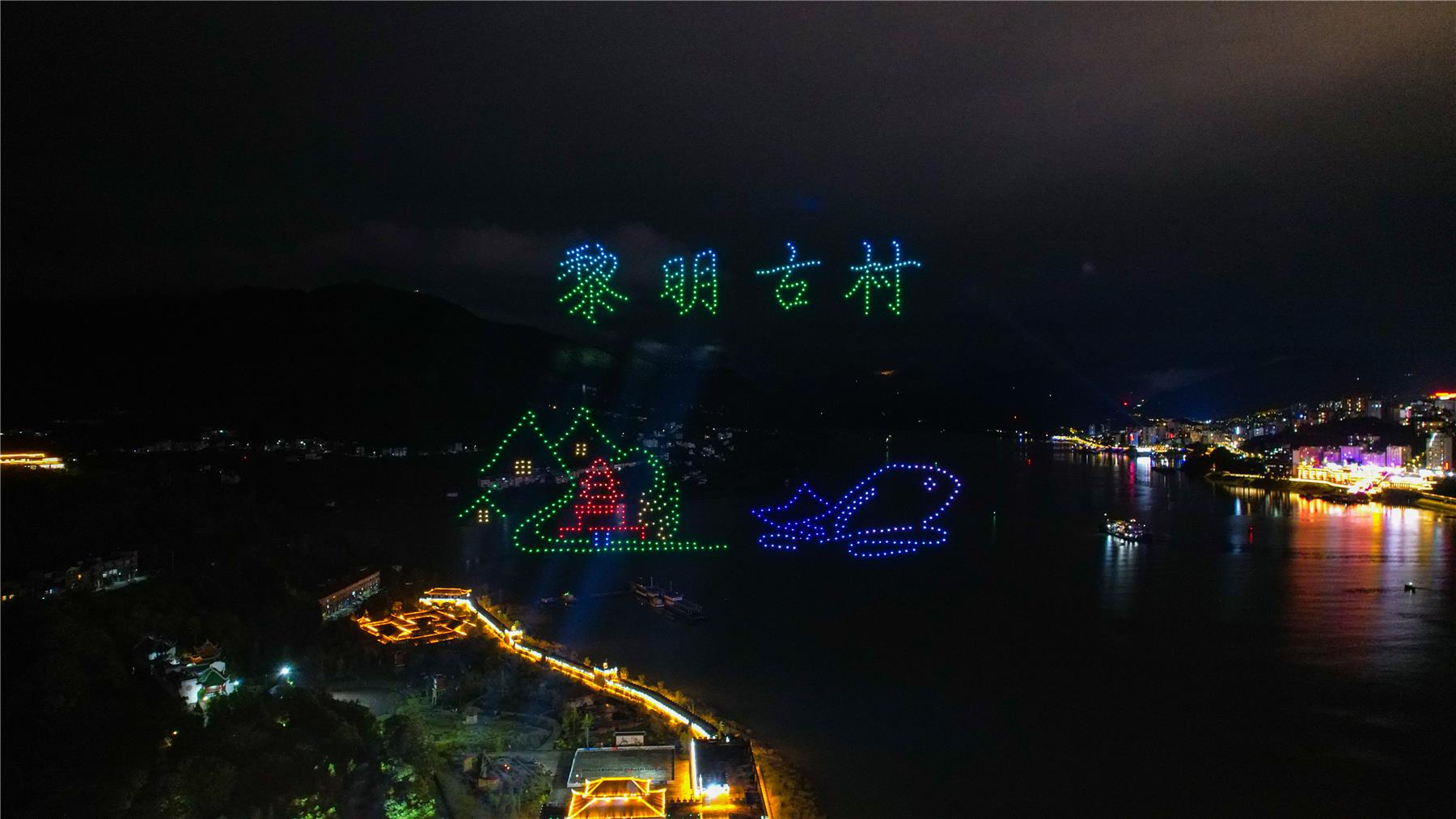 此次無人機編隊表演還結合“全域旅游”主題,組成“云陽城市形象IP“興云兔””、“云陽恐龍IP形象“龍寶”、“乖妹””“天下龍缸 千年張飛廟”“黎明古村”等充滿地域文化特色的創意畫面,與城市夜景交相輝映,尤其是江與城遙相呼應,在江面蕩起層層煙波,如夢似幻,閃耀在三峽庫區夜空,吸引了大量游客和市民駐足觀看,讓人沉醉其間。“無人機表演展示了張飛廟、天下龍缸等風景,很符合云陽當地的一個特色,能夠感受到云陽獨特的地域文化。”成都游客昝思思說。