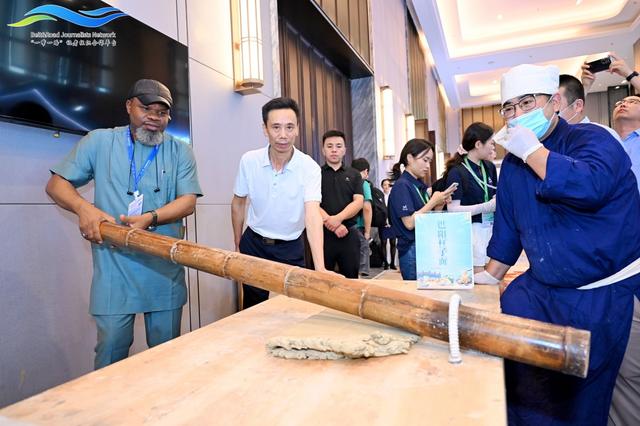 ▲外媒記者感受“杠子面”。受訪單位供圖