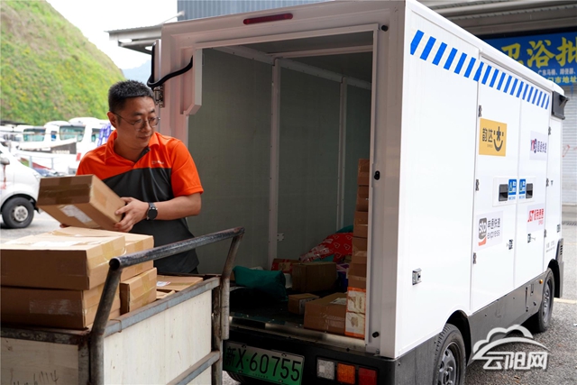 在云陽(yáng)縣快遞物流園,工作人員正將包裹整齊碼放進(jìn)快遞無(wú)人車的貨倉(cāng)。這臺(tái)無(wú)人車車身印有“韻達(dá)”“圓通”等多家快遞品牌標(biāo)志,取消了傳統(tǒng)駕駛室設(shè)計(jì),整體造型充滿科技感。裝載完成后,工作人員通過(guò)手機(jī)APP一鍵發(fā)送指令,無(wú)人車便平穩(wěn)啟動(dòng),沿著預(yù)設(shè)路線駛向配送站點(diǎn)。