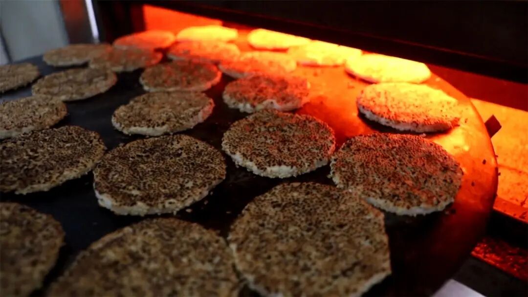 半分鐘內循環烘烤月餅兩次,通過聽聲、聞香、觀色,使月餅呈現兩面金黃狀態,上面的芝麻顆顆酥脆,令人垂涎欲滴。徒弟們坦言,全廠只有老師傅敢用明火,多一秒則焦糊,少一秒則夾生。