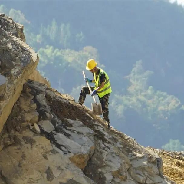 大型挖掘機揮舞著鐵臂,在壩基處精準作業