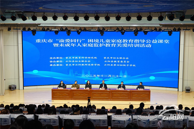 云陽網(wǎng)訊(記者 王月園 實(shí)習(xí)生 楊靖宇)11月21日,重慶市“渝愛同行”困境兒童家庭教育指導(dǎo)公益課堂暨未成年人家庭監(jiān)護(hù)教育關(guān)愛培訓(xùn)活動(dòng)在云舉行。重慶市教育科學(xué)研究院德育研究所所長、重慶市家庭教育研究中心副主任譚舒予,縣人大常委會(huì)副主任張建才出席活動(dòng)。