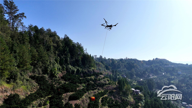 “這款無人機單次載重130斤,從山上到上下150米的距離僅需1分鐘,每天可完成300多趟運輸任務,總運量達3.5萬斤。”飛手晏福倫介紹,有了無人機大大節約了人力和時間成本。