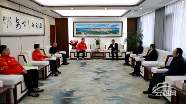 11月19日,縣委書記陳道彬,縣委副書記、縣長甘露會見第十五屆全運會摔跤男子古典式97公斤級冠軍李一鳴及教練代表團。